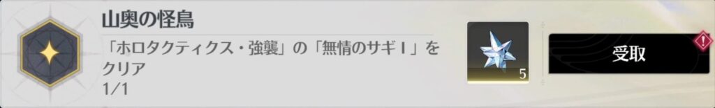- 今洲エリアで秘蔵を累計100個開ける(星声5)