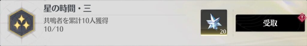 - 今洲エリアで累計20個潮汐の贈物を獲得(星声5)