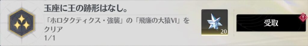 特殊モーションが条件のため、Ver.1.0〜Ver.1.4の期間の深層空想秘境でしか獲得できなかった実績です。