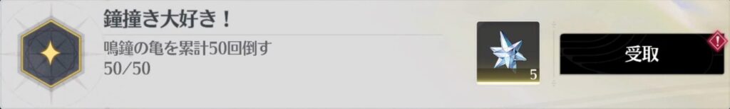 - 今洲エリアで累計50個潮汐の贈物を獲得(星声10)