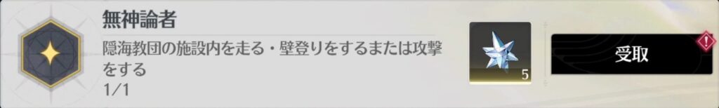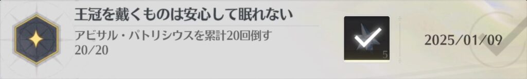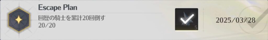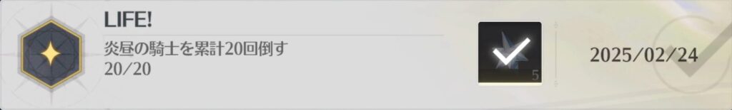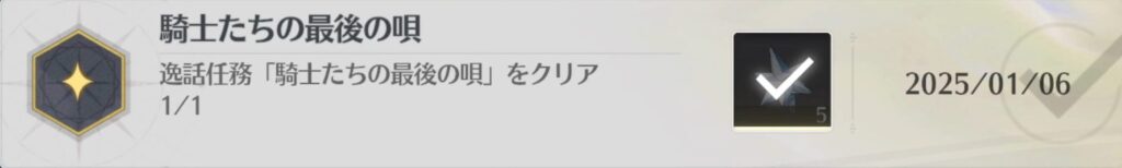 日常任務「騎士の名にかけて」をクリアで実績獲得。