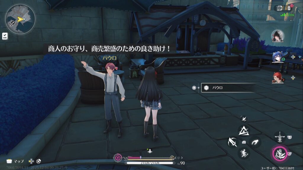 パウロに話しかけてイベントを進め、ゲーム時間を翌日にし、下図の場所に移動して再度話しかけると実績獲得です。