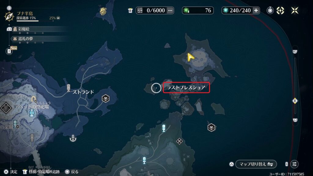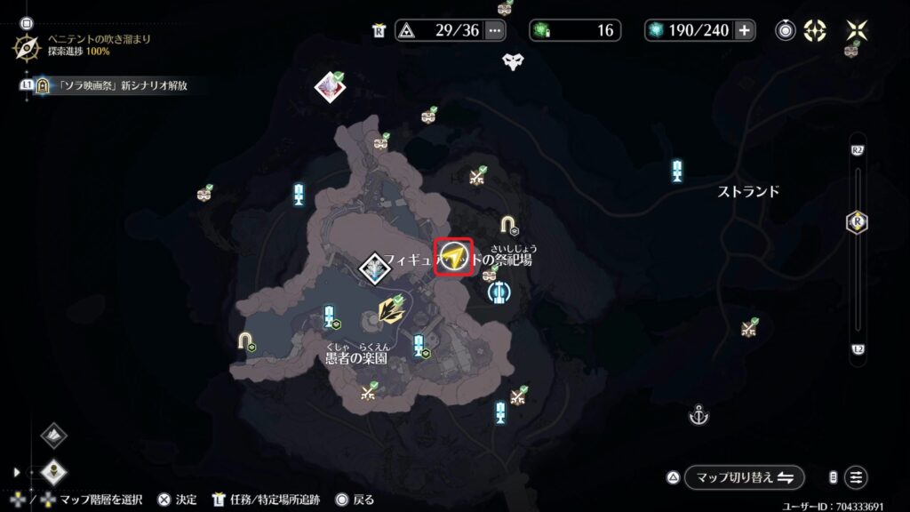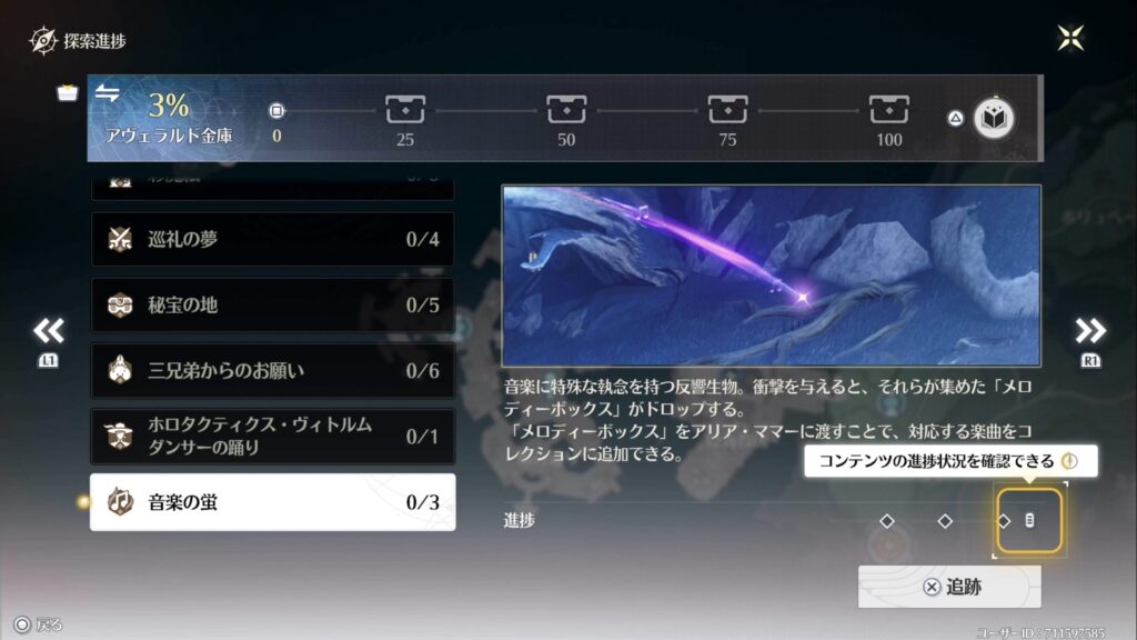 楽曲はフィールドで入手することができ、マップの探索進捗から場所を追跡することができます。
