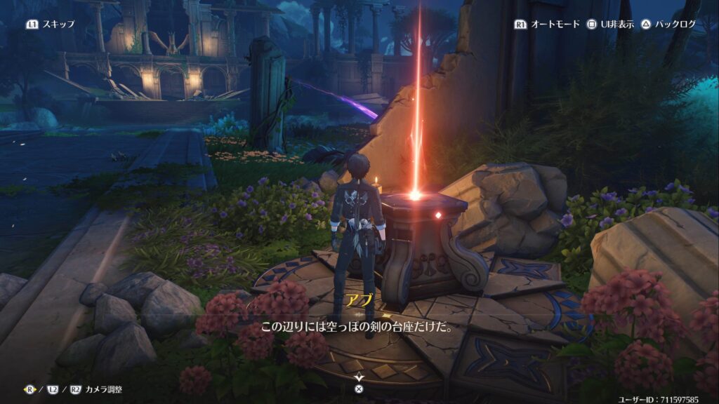 白き月の森遺跡にある赤く光っている台座に、入手した剣を置いていきます。