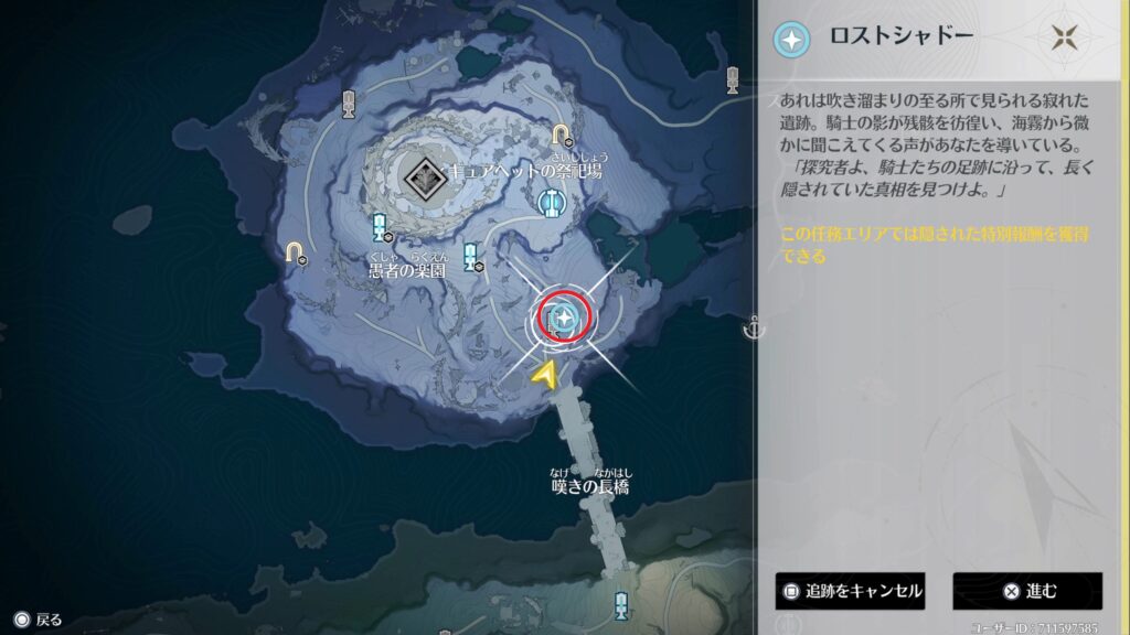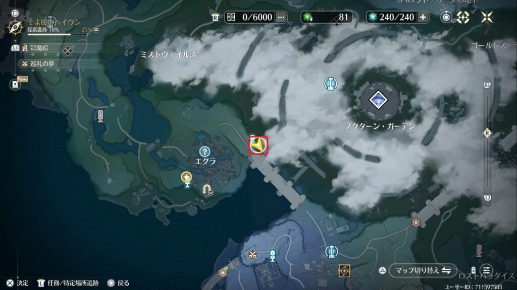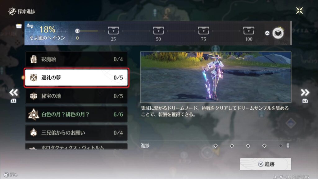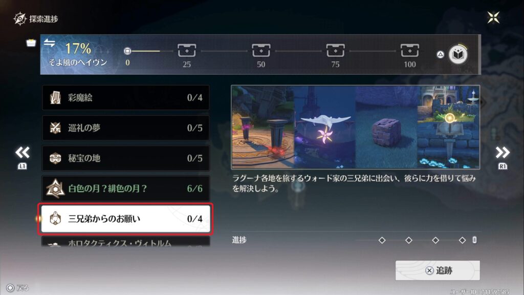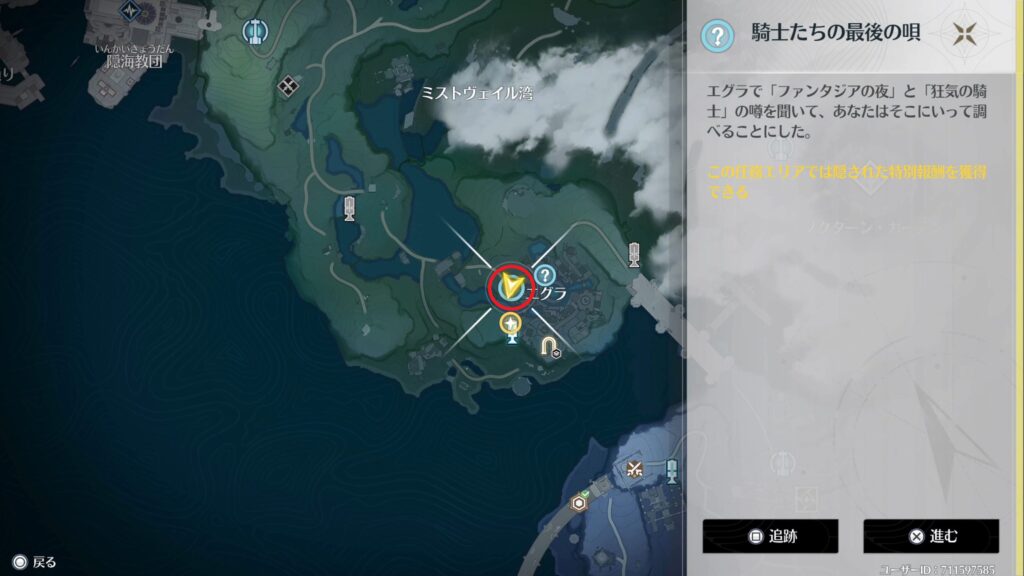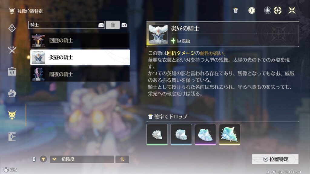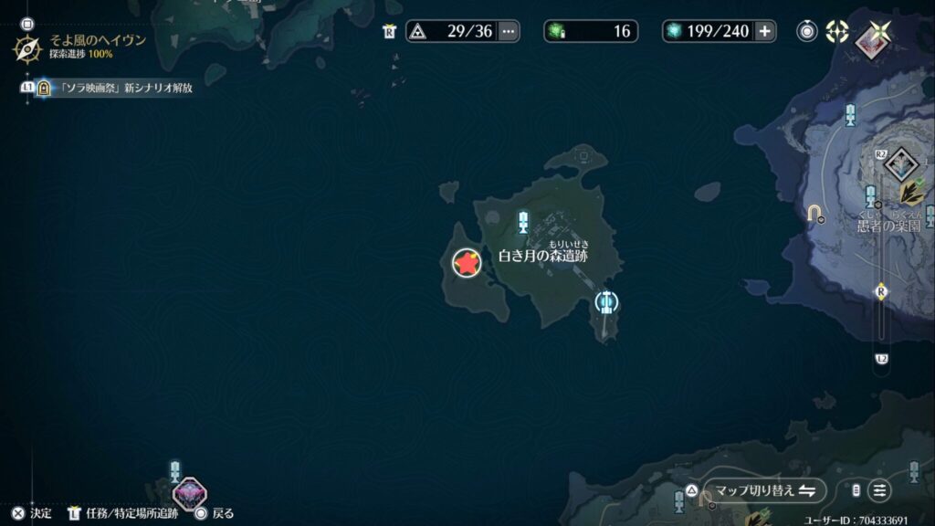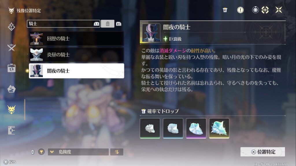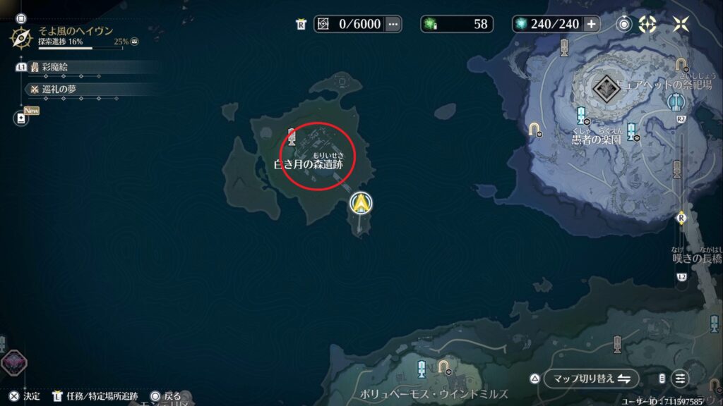 そよ風のヘイヴンのマップを開き、探索進捗で確認できる「白色の月?緋色の月?」を追跡して騎士を倒していきます。