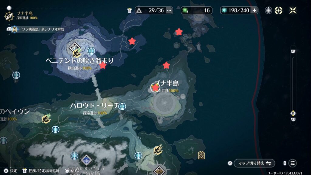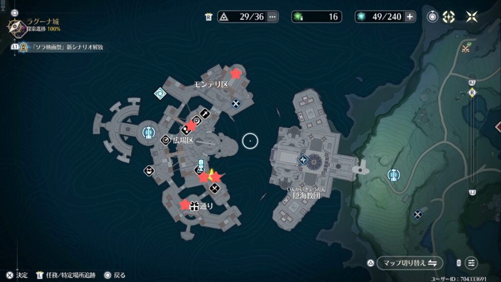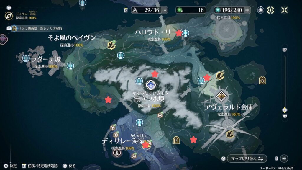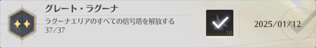 - ラグーナの5つのエリアの探索進捗が100%達成(星声10)