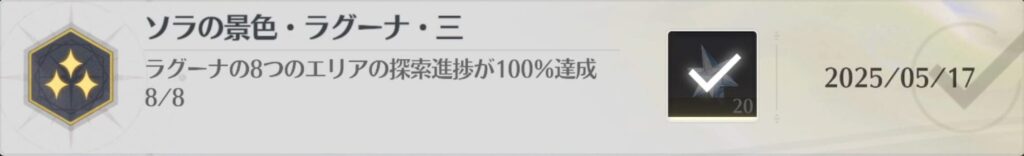 - ラグーナの8つのエリアの探索進捗が100%達成(星声20)