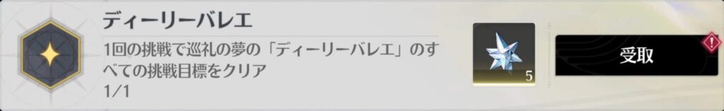 1回の挑戦で巡礼の夢の「ディーリーバレエ」のすべての挑戦目標をクリア