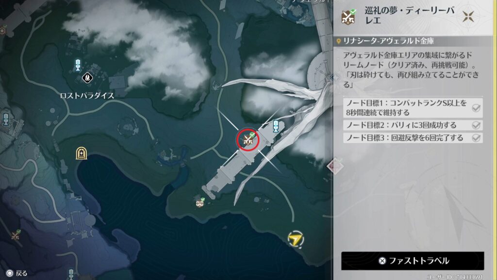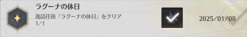 - ラグーナの3つのエリアの探索進捗が100%達成(星声5)