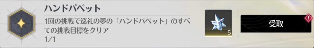 1回の挑戦で巡礼の夢の「ハンドパペット」のすべての挑戦目標をクリア