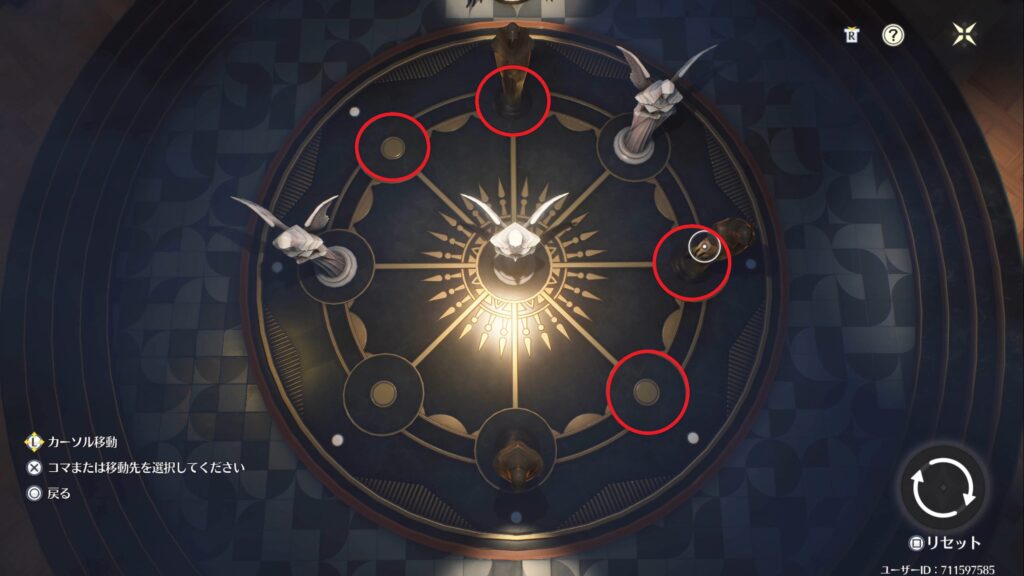 チェスの黒い駒を周囲のマスに止めると通路が開きます。