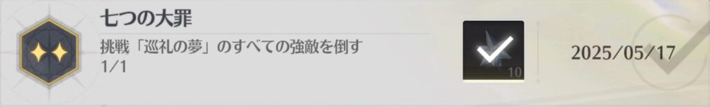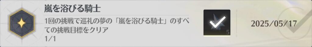 1回の挑戦で巡礼の夢の「嵐を浴びる騎士」のすべての挑戦目標をクリア