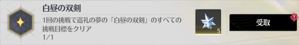 1回の挑戦で巡礼の夢の「白昼の双剣」のすべての挑戦目標をクリア