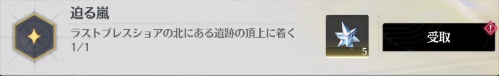 ラストブレスショアに入るためには危地任務「空高く、風が帰る場所」をクリアする必要があります。