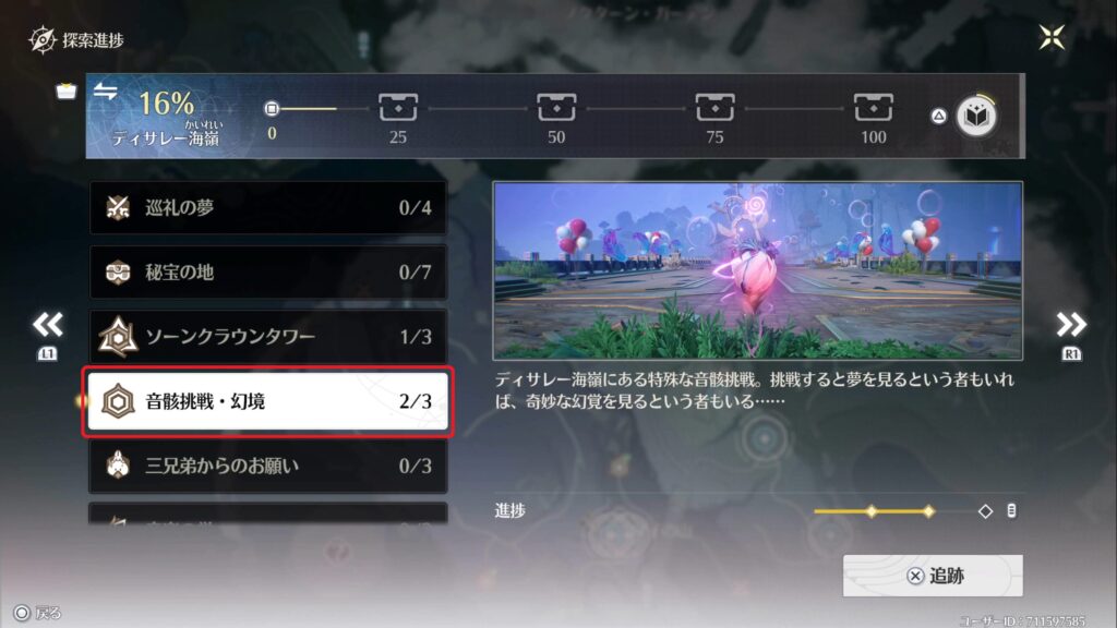 ディサレー海嶺にある音骸挑戦・幻境をクリアすると実績獲得です。