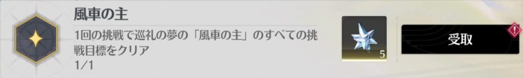 1回の挑戦で巡礼の夢の「風車の主」のすべての挑戦目標をクリア