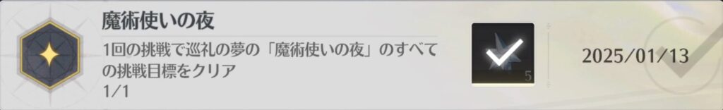 1回の挑戦で巡礼の夢の「魔術使いの夜」のすべての挑戦目標をクリア