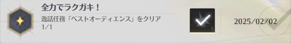 日常任務「騎士の名にかけて」をクリアで実績獲得。