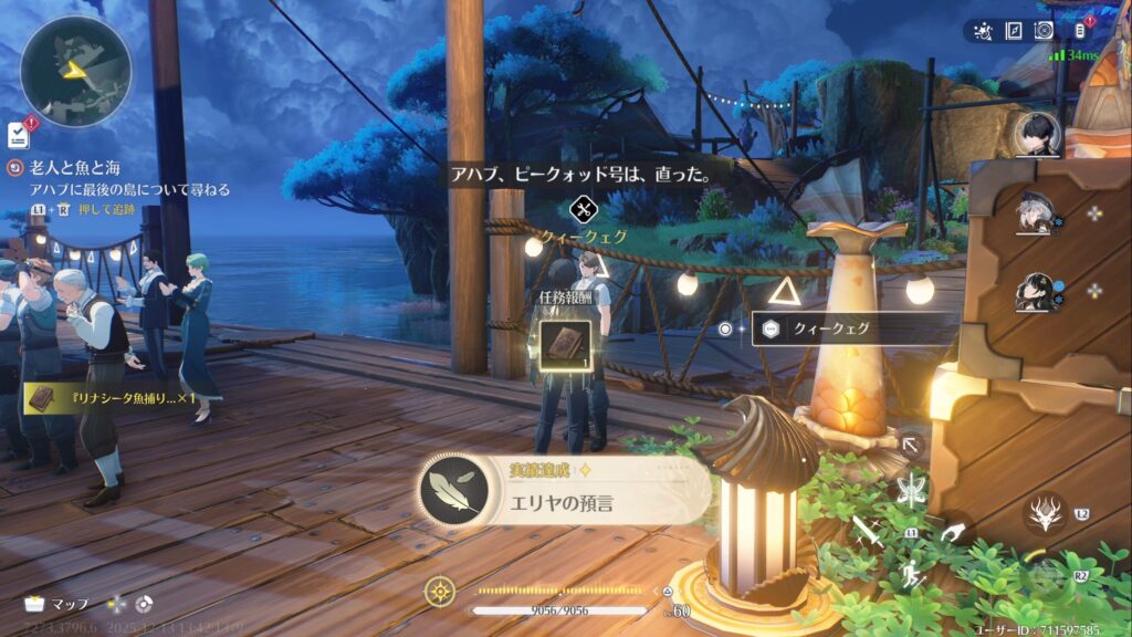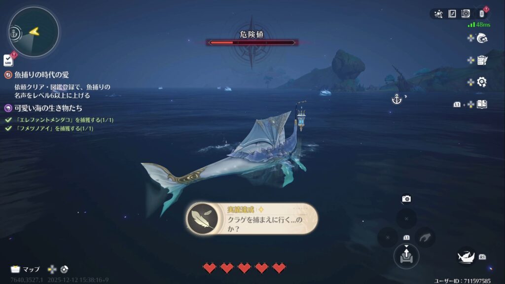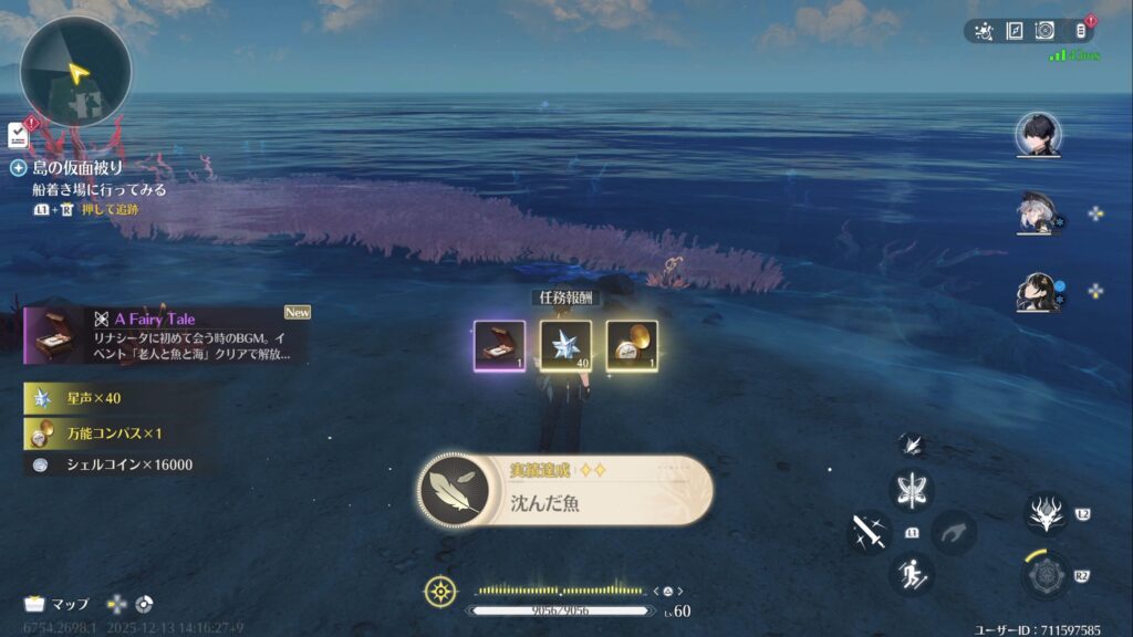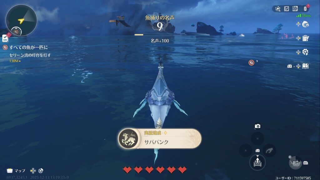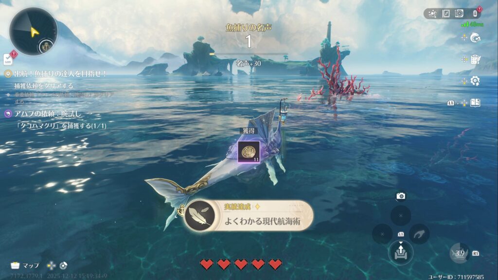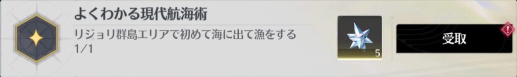 道標任務「出航!魚捕りの達人を目指せ!」を進行で自動取得です。