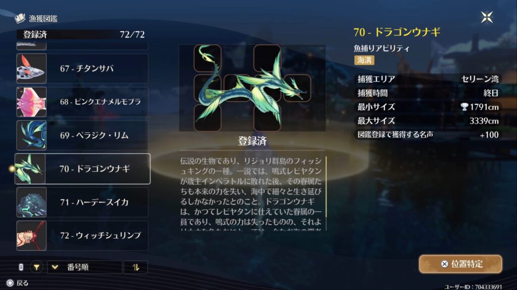 また、No.70のドラゴンウナギだけは事前にアイテムを集める必要があります。