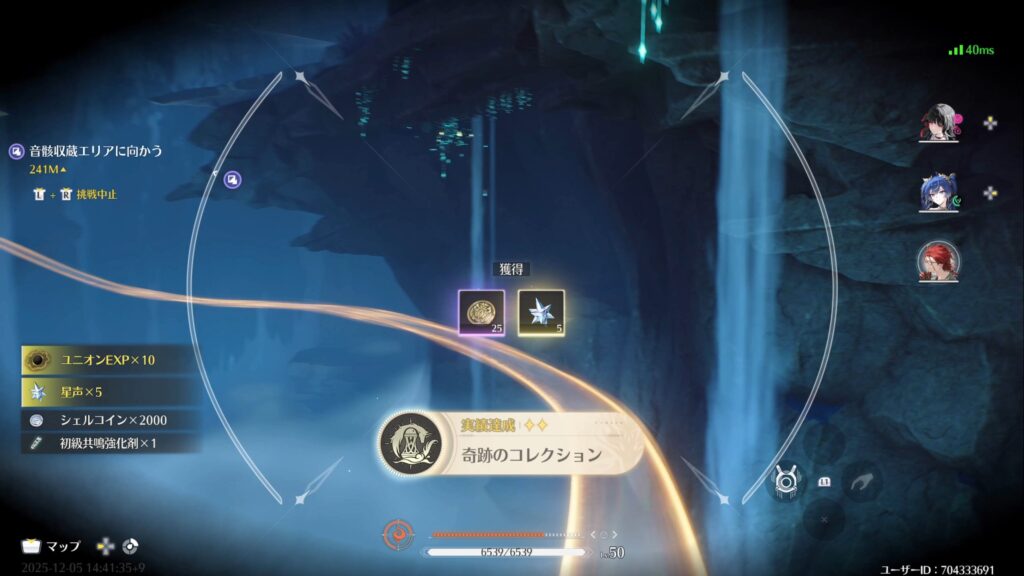 アヴェラルド金庫北側の「音骸挑戦ソアー5」から東の洞窟へ飛んで行きます。
