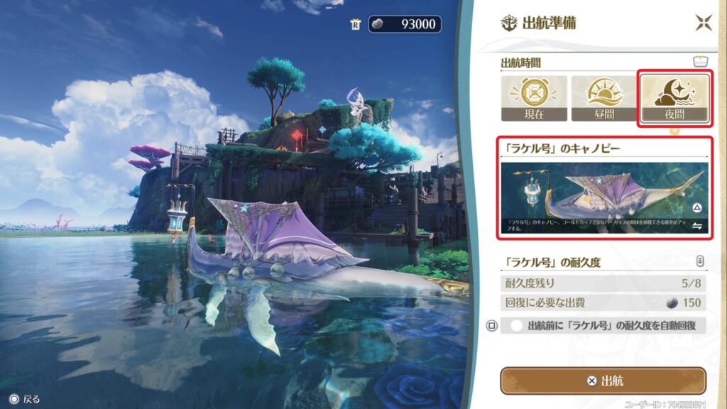 ゴールドカップ・シルバーカップを集めるには、「夜間出航+ラケル号のキャノピー」で効率を上げることができます。(夜間限定の魚がいるため)