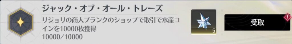 リジョリの商人プランクのショップで取引で水産コインを10000枚獲得