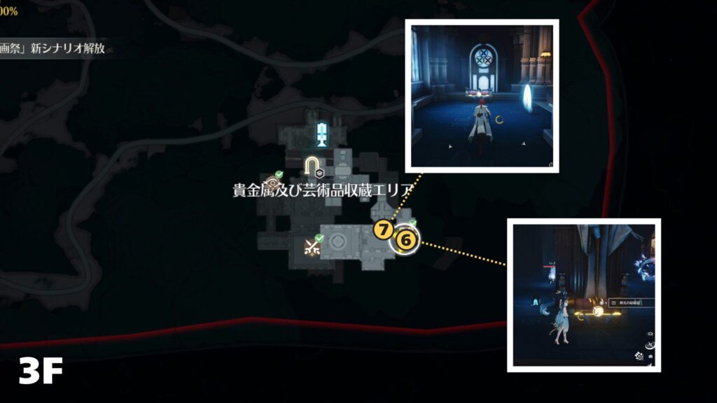 貴金属及び芸術品収蔵エリアと音骸収蔵エリアのすべての秘蔵を開ける