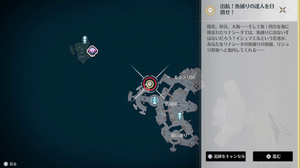 道標任務「出航!魚捕りの達人を目指せ!」を進行で自動取得です。