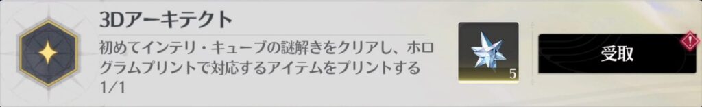 初めてインテリ・キューブの謎解きをクリアし、ホログラムプリントで対応するアイテムをプリントする
