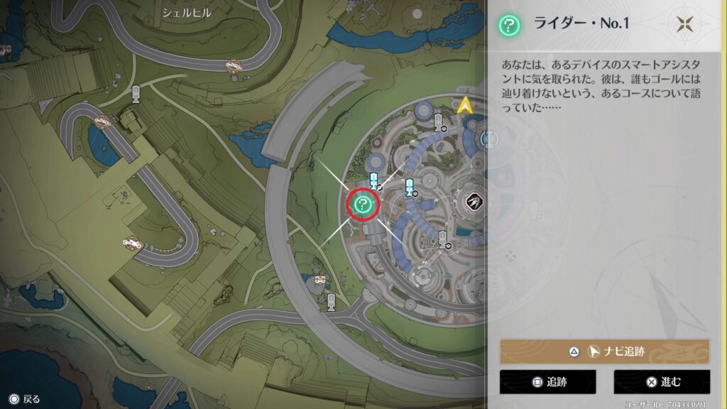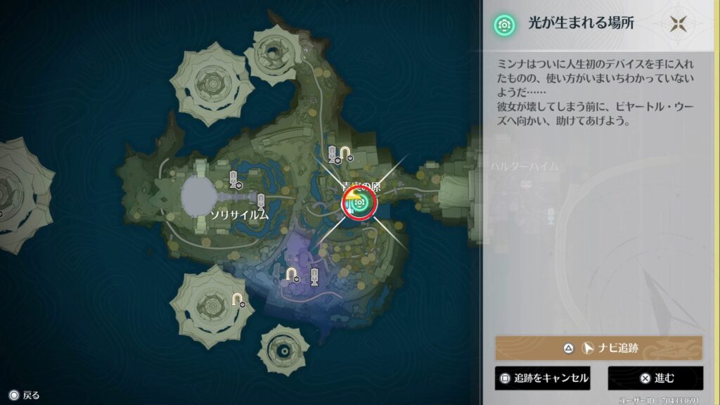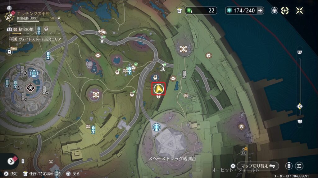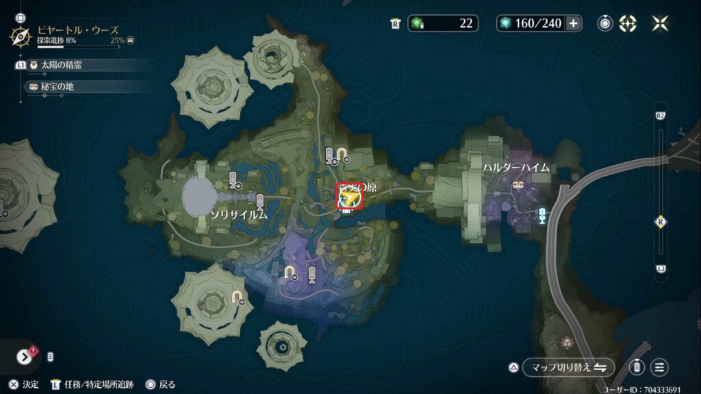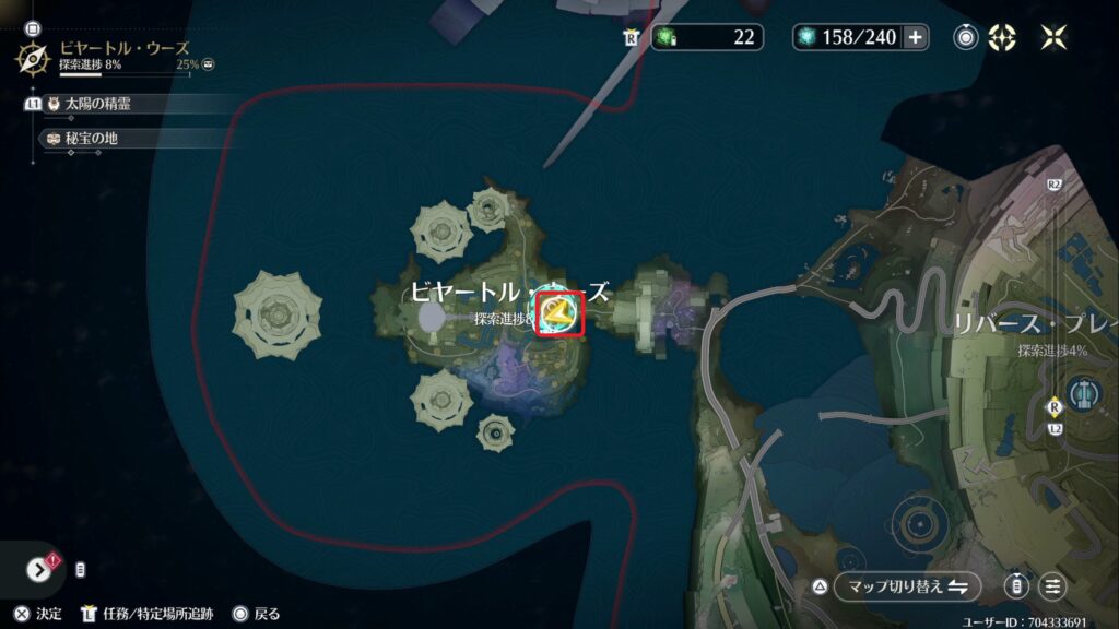 場所はマップの探索進捗から追跡することができます。