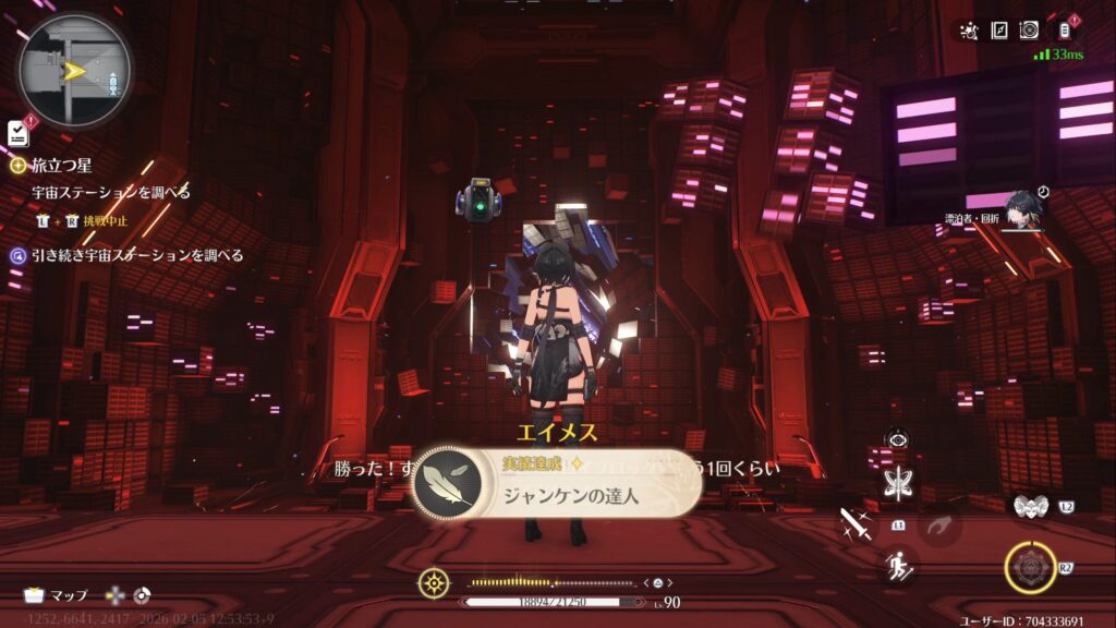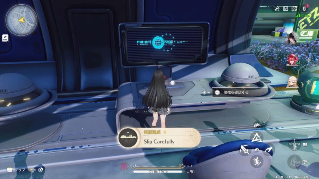 モニターの前で「映像を確認する」を選ぶと実績獲得です。