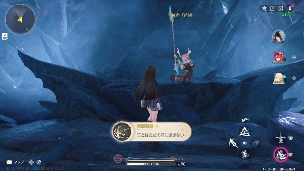 時間を2日後に進めると、玉座の場所に流れ者「首領」が座っているので話しかけると実績獲得です。