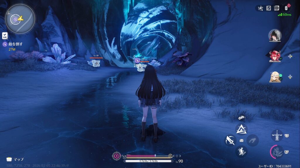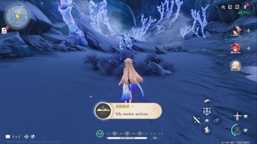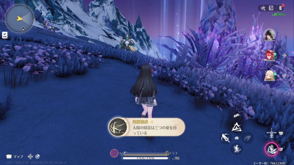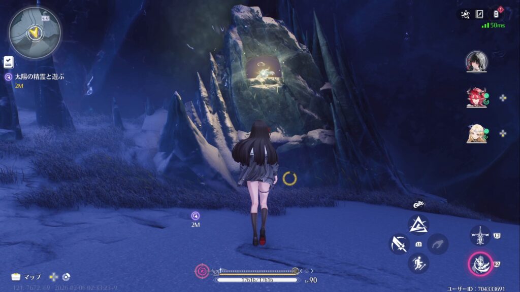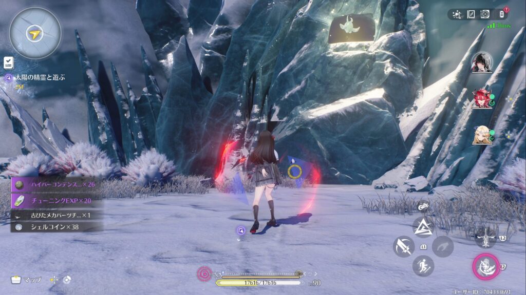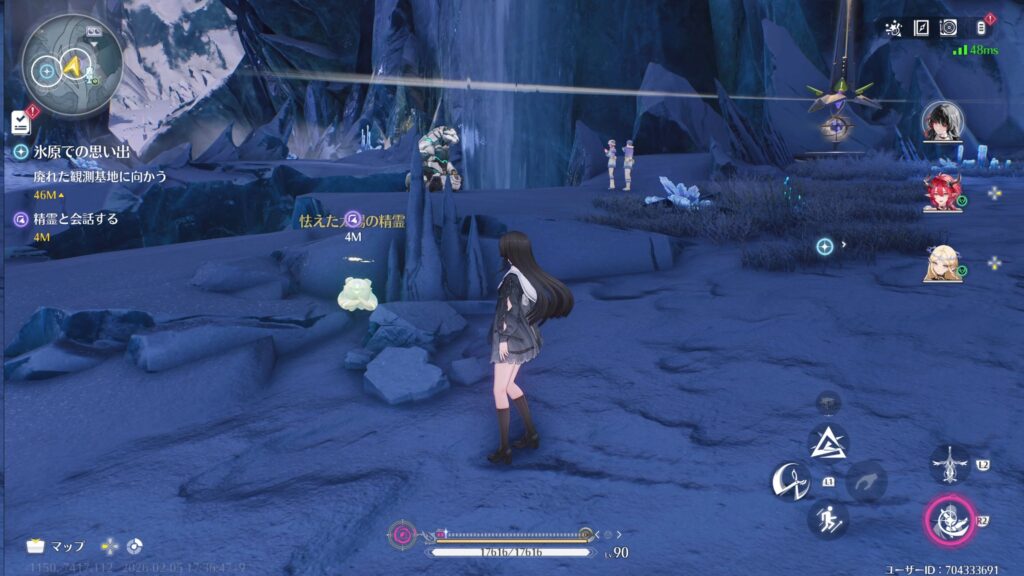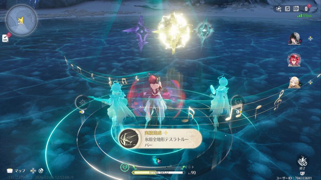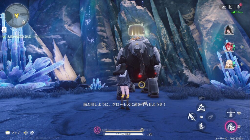 周囲の敵を倒すと妖精が現れるので、氷に向かって音骸顕現グローモスを使用します。