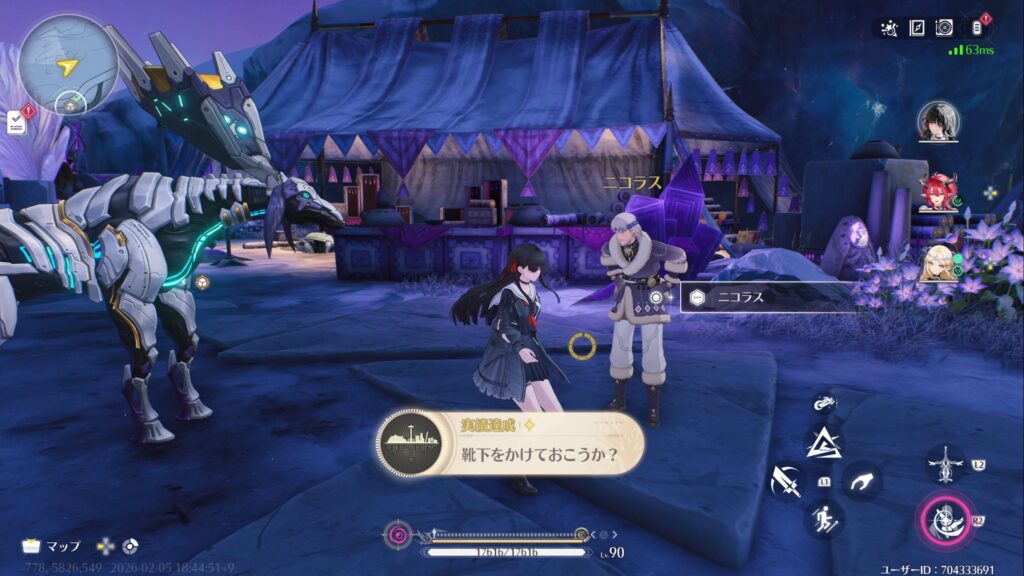 氷原の港にいるニコラスに話しかけると実績獲得です。