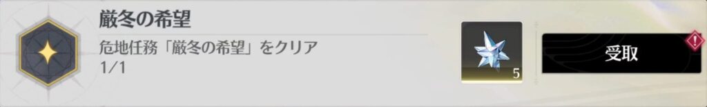 危地任務「氷と鉄の歌」をクリアし、続編の危地任務「厳冬の希望」を進行中に獲得することができます。