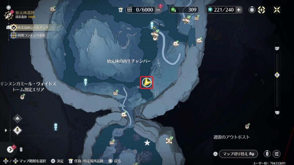 3か所まわると、始元林の再生チャンバーで会おうと言われるので、指定の場所に向かいます。
