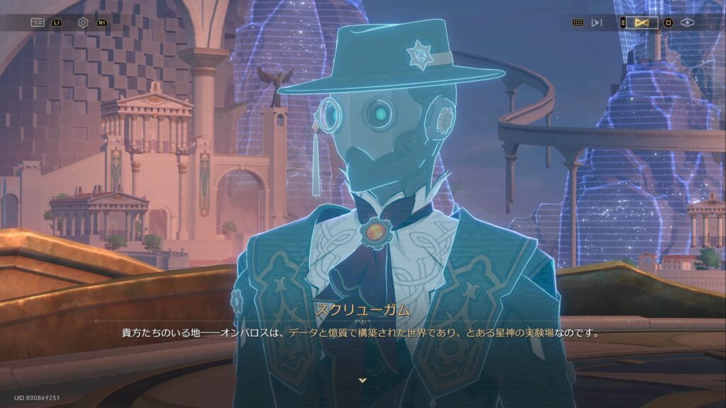 スクリューガムは、オンパロスがデータと憶質で構築された世界であり、とある星神の実験場であることを告げた。