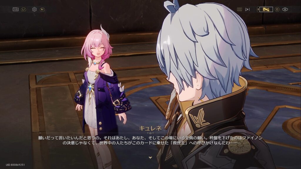 キュレネは開拓者に「救世主」のカードを持った状態で天秤に乗ってもらうことを提案した。