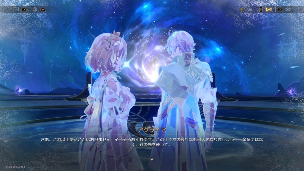 第33550334回目の永劫回帰、アグライアはファイノンに再創世を託し、フレイムスティーラーを針の先で裁断することを誓った。