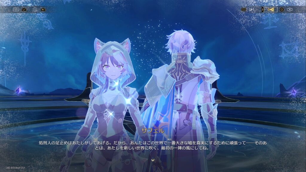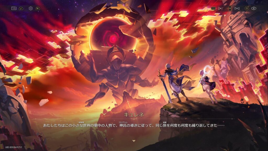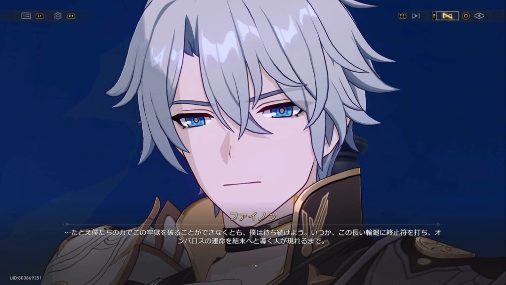 - 「壊滅」に至る演算がまだ終わっていないという嘘を「オンパロス」に信じ込ませるため、最初のファイノンとキュレネは輪廻を続けるという選択を取る。