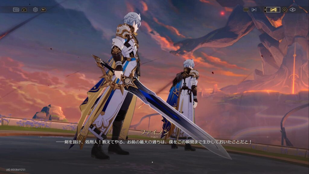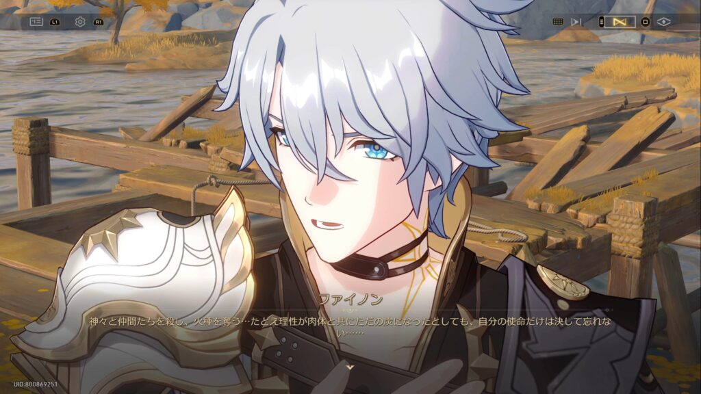 33550336回目(現在)の永劫回帰で、過去のカスライナ(フレイムスティーラー)から記憶と火種を受け継いだファイノンは、「再創世」を阻止する使命を引き継ぐことを決意した。