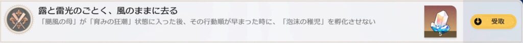 「颶風の母」が「育みの狂潮」状態に入った後、その行動順が早まった時に、「泡沫の稚児」を孵化させない