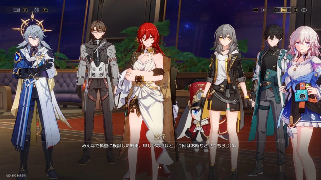星穹列車のメンバーで話し合った結果、ジェイドには別の目的がある可能性があること、そして星穹列車は中立の立場であるべきという観点から誘いを断ることに。