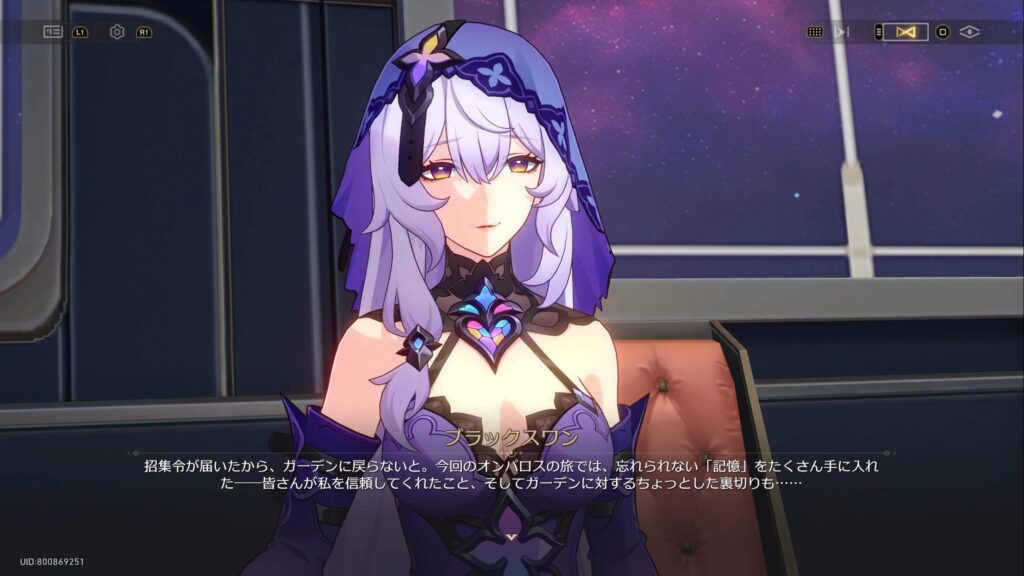 この場にいなかったブラックスワンに話し合いのことを伝えに行くと、ガーデン・オブ・リコレクションからメモキーパーに召集令が届いたため、戻らなければいけなくなったという。