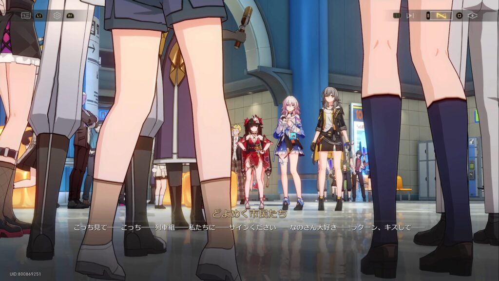 開拓者となのかが駅を出ようとすると、星穹列車の熱烈なファンに囲まれる。