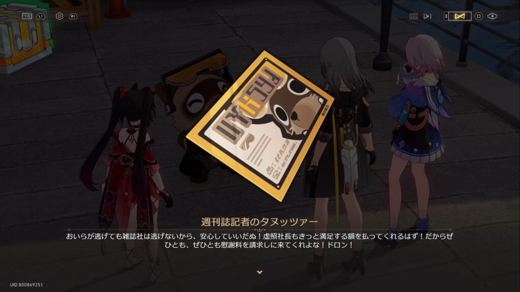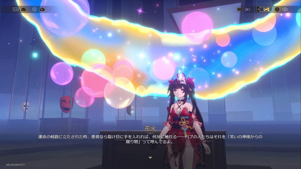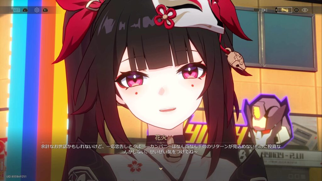 花火は請謁者になろうとしている者にとって、星穹列車はかっこうの獲物であるとし、先程のゴシップ記者だけでなく、他の請謁者候補にも気を付けるべきだと忠告をした。