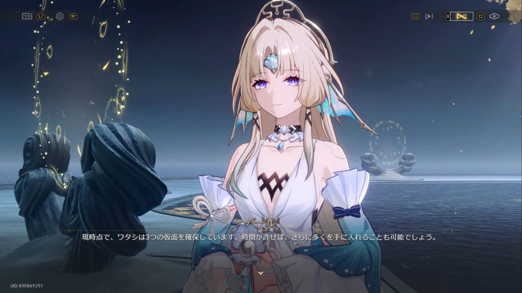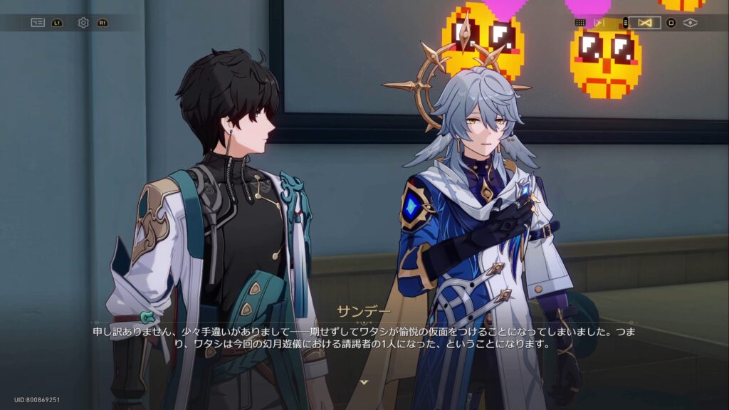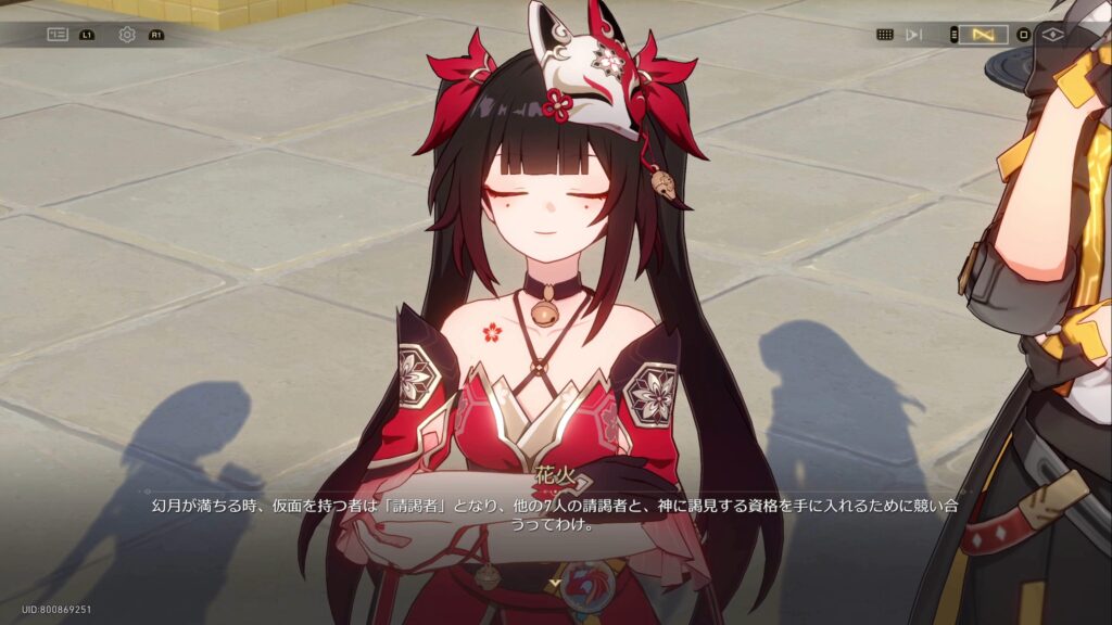 • 幻月遊戯では8つの仮面を被る8人の請謁者が戦い、勝者が「愉悦」の星神アッハに謁見することができ、1分間その力を分け与えてもらうことができる