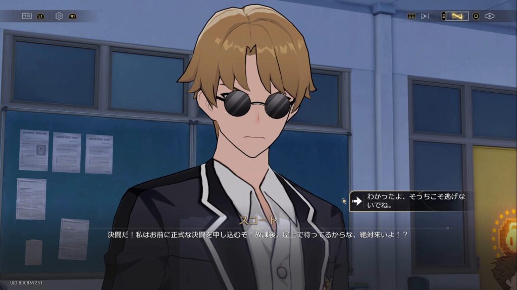 開拓者はスコートに決闘を申し込まれ、放課後屋上に来るように呼び出される。