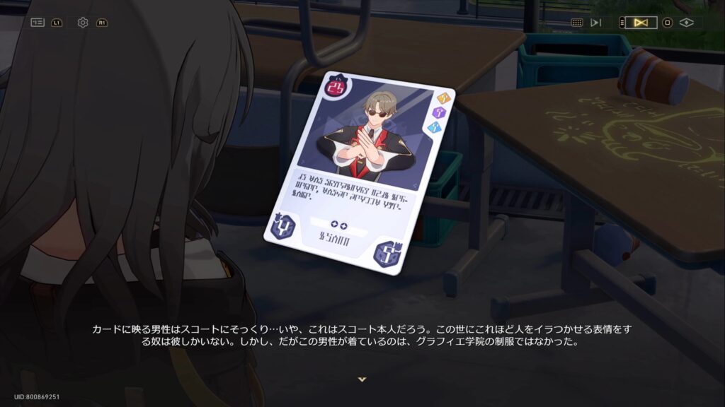 カードにはスコートがカンパニーの制服を着ている姿が写っており、それを見た開拓者は学校に来る前のことを思い出し、急いでなのかに連絡した。